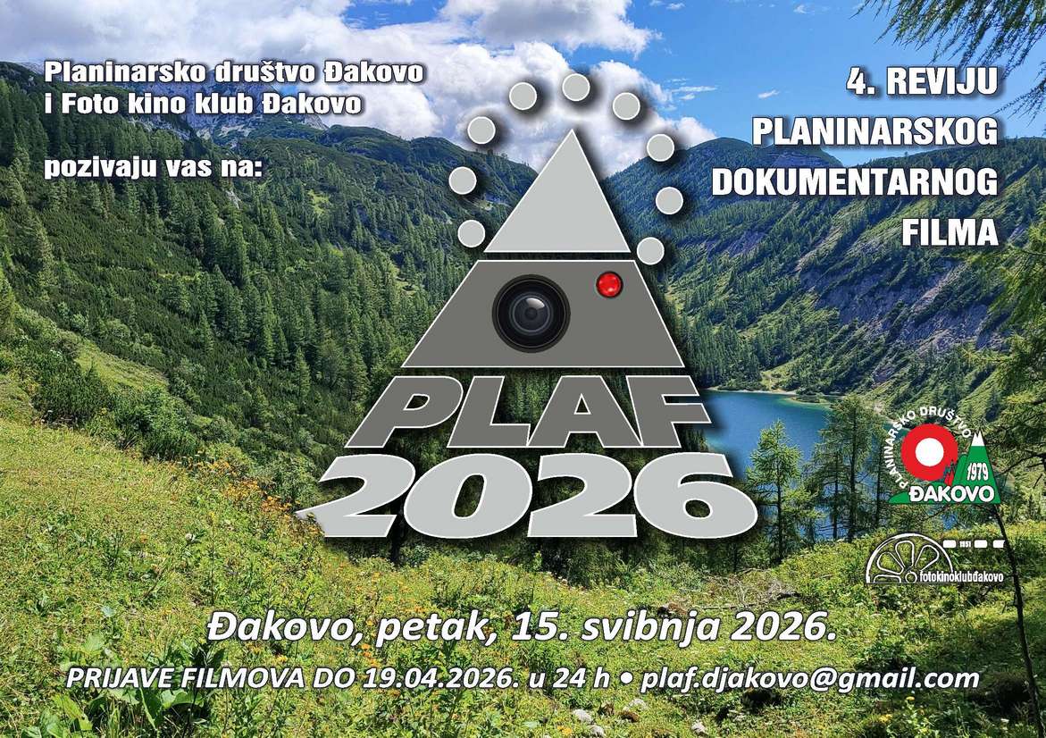 Revija planinarskog dokumentarnog filma – PLAF 2026, održat će se u petak, 15. svibnja/maja, 2026. g., kada će biti prikazan izbor najboljih filmova te dodjela nagrada i priznanja. U sklopu Revije će biti održana i radionica na istu temu te drugi sadržaji.